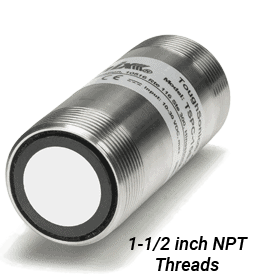 The ULS-150-S ultrasonic level transmitter provides a continuous level indication in applications up to 30 feet. The rugged housing is made of all 316 stainless steel, has a standard 1-1/2″ NPT mounting thread, and is rated Nema 4x. It has 4-20Ma and 0-10v outputs for convenient hook up to digital displays and PLC’s. The sensor is push-button “teachable” so it can be calibrated in the field without the need for a computer or software. It requires 24vdc power and comes standard with 6ft of cable.
